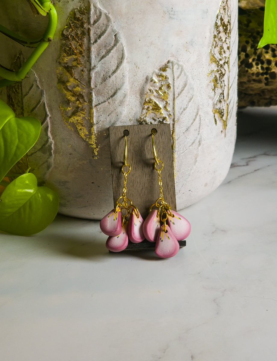 Indulge in the delicate beauty of Ava earrings! Handcrafted from pink and white polymer clay, these earrings showcase three intricately detailed flower petals with elegant gold accents. At a stunning 2.5 inches, these earrings are the perfect accessory for any occasion. Experience the unique blend of femininity and sophistication with Ava.