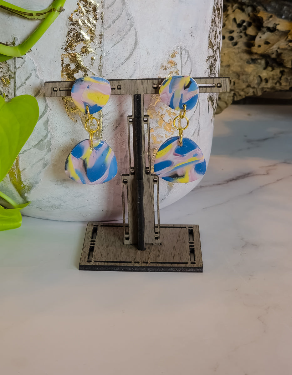 Experience the unique and vibrant beauty of our one-of-a-kind multi-color polymer clay earrings! These handcrafted earrings measure approximately 2.5" and with only 1 left in stock, you'll be the only one to own such a special pair. Stand out and make a statement with these truly original and eye-catching earrings.