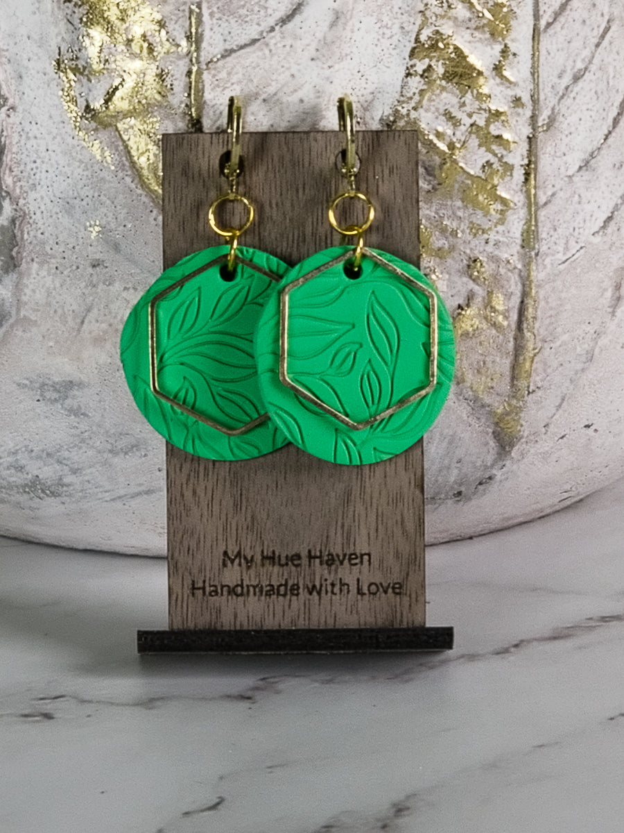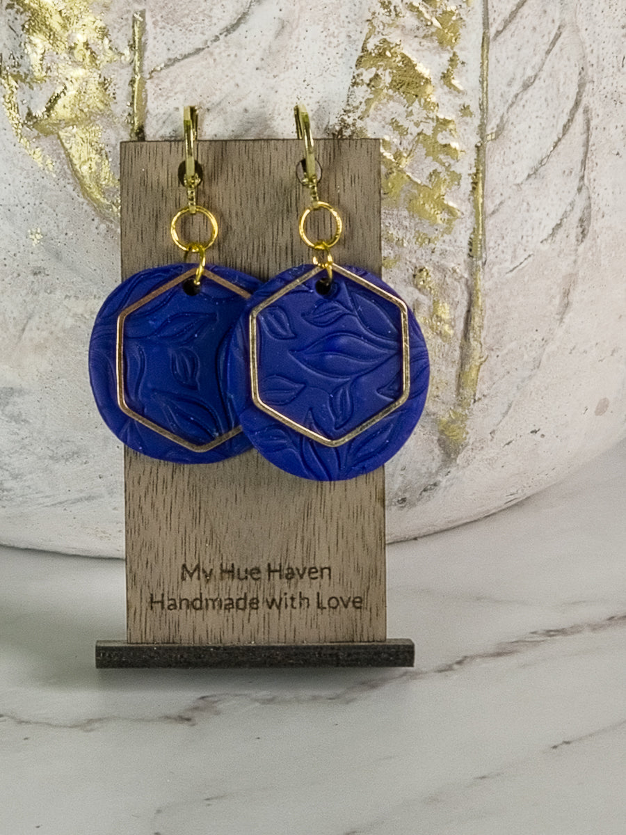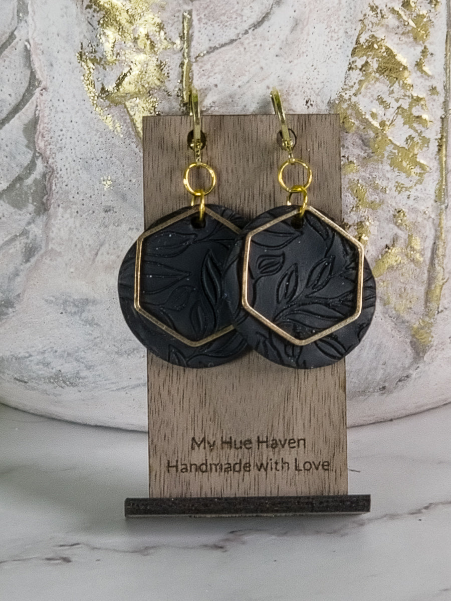 Elevate your style with Eva, a pair of stunning polymer clay earrings with gold accents. Available in three chic colors - black, blue, and green - these round earrings measure about 2 inches. Experience effortless elegance and make a statement with Eva!