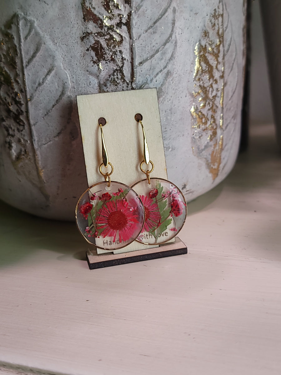 Indulge in the beauty of nature with the Sunny earrings. Adorned with stunning resin and dried flowers, each pair measures approximately 2 inches for a delicate and feminine touch. Perfect for adding a touch of natural elegance to any outfit.